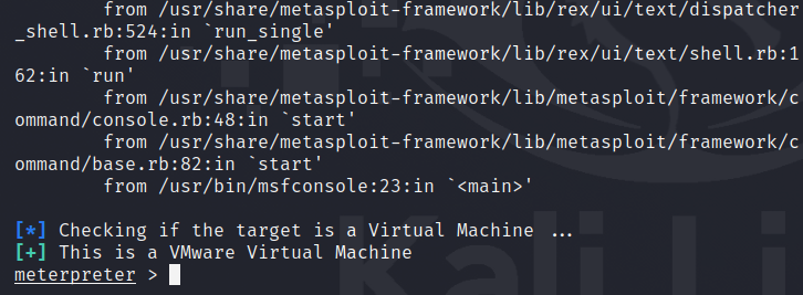6、查看主机是否在虚拟机上 run post/windows/gather/checkvm