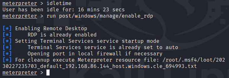 run post/windows/manage/enable_rdp # 开启远程桌面