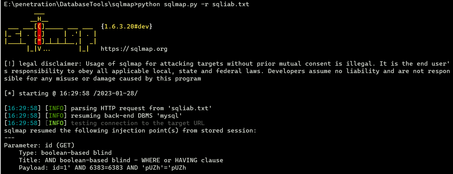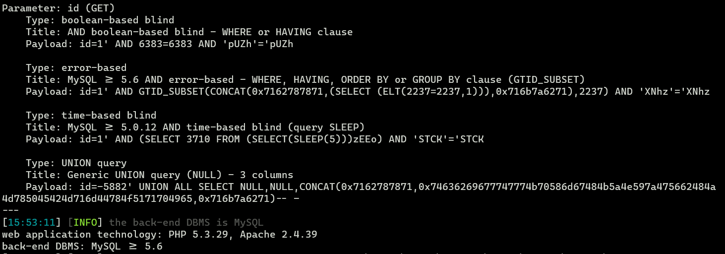 sqlmap.py -u http://192.168.86.131/sqli/Less-1/?id=1 --batch --smart