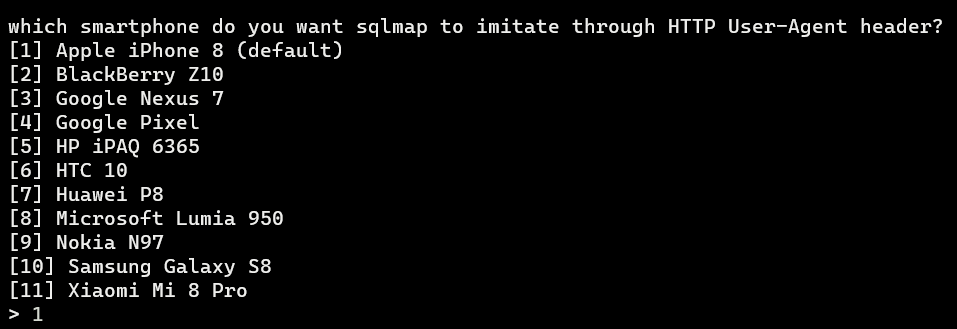 sqlmap.py -u http://192.168.86.131/sqli/Less-1/?id=1 --mobile