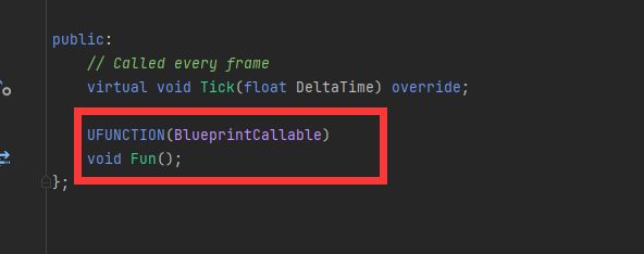 我们在C++中写一个函数Fun(),并且在蓝图中对他进行调用。