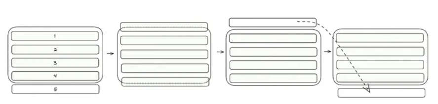 要优化这种情况,则必须对滑屏菜单组件进行改造,将原来策略中所有元素都将实例化改为只需要实例化显示的实例数量。再拖拽时判断是否有UI元素被移出画面,再将这些被移出并看不到的元素进行重复利用,将它们填补到需要显示的位置上去,再对该单位元素的属性重新设置,让重复利用的元素更新为在该位置需要显示的元素的样子