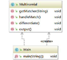 在做第一次作业时,我的思想还处在面向过程语言的桎梏当中,因此我只是简单分成了两个类:一个类提供方法,一个类调用方法。程序结构的分析如下图: