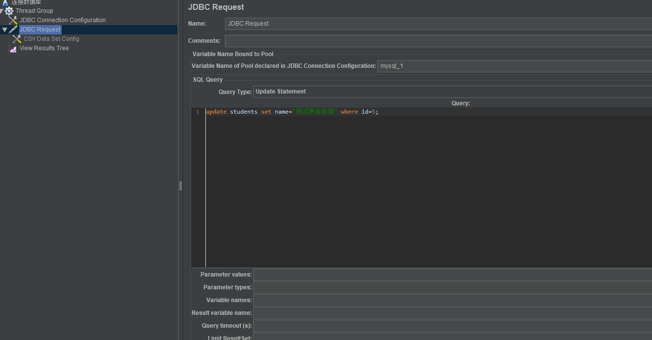 b.sampler-jdbc request,注意query type选择prepared update statement