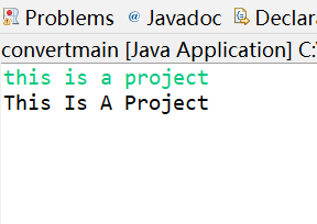 public class Converter{ public static String[] words = new String[20]; public static String convert(String value) { StringBuffer upAfter = new StringBuffer(value.length()); char aCharacter; value = value.replaceAll("[\\pP‘’“”]", " ");//将其他的符号都转化为空格 words = value.split(" ");//按照空格将每个单词分离称为字符数组 for (int i = 0;i < words.length; i++) { for(int j = 0;j < words[i].length(); j++) { aCharacter = words[i].charAt(j); if (j==0) { //判断是不是字母 if(Character.isLetter(aCharacter)) {//转化为大写字母 upAfter.append(Character.toUpperCase(aCharacter)); } else { Character.toUpperCase(aCharacter); } } else { //如果是大写字母就直接转成小写字母 if(Character.isLetter(aCharacter) && Character.isUpperCase(aCharacter)) { upAfter.append(Character.toLowerCase(aCharacter)); } else { upAfter.append(words[i].charAt(j)); } } } upAfter.append(" "); } return new String(upAfter); } }