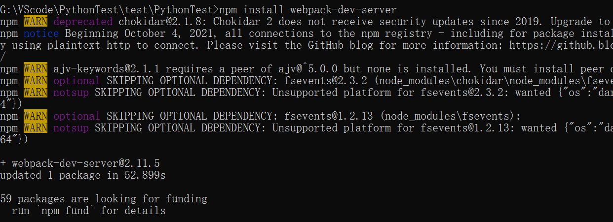 如果这里的npm install报错的话,则是代理的问题,参考博文https://www.cnblogs.com/s313139232/p/7885518.html