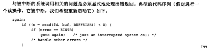 因此,我们在调用上表中函数之前要先保存errno,之后恢复errno。