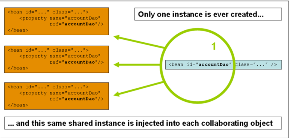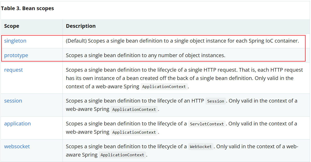 命名空间分为以下几种。初始阶段学习singleton(默认)和prototype