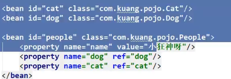 byName自动装配:会在容器的上下文去查找和自己set方法后面值相同的beanid。即setDog(Dog dog) bean id=dog