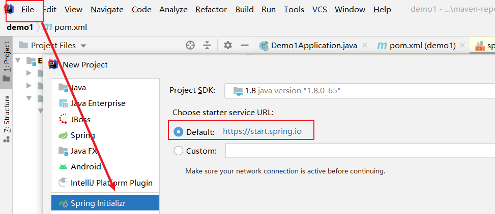 2.Demo1Application :springboot项目的主程序。暂时不要动他
