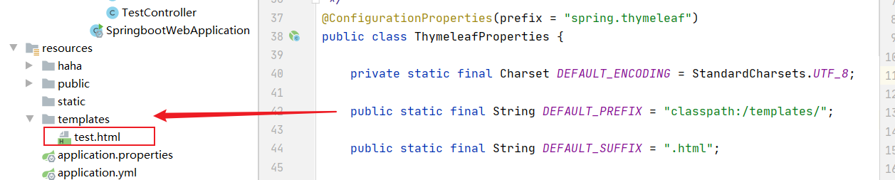 <!DOCTYPE html> <html lang="en" xmlns:th="http://www.thymeleaf.org"> <head> <meta charset="UTF-8"> <title>Title</title> </head> <body> <h1>测试页面</h1> <div th:text="${msg}"></div> </body> </html>