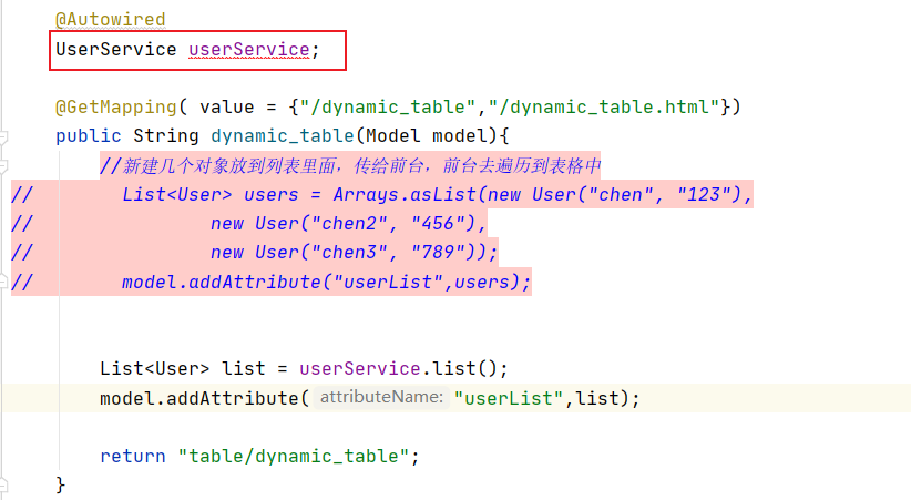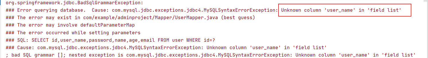 @Data @AllArgsConstructor @NoArgsConstructor public class User { @TableField(exist = false) private String userName; @TableField(exist = false) private String password; private Long id; private String name; private Integer age; private String email; }