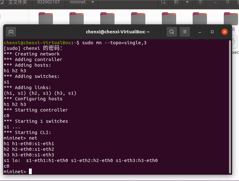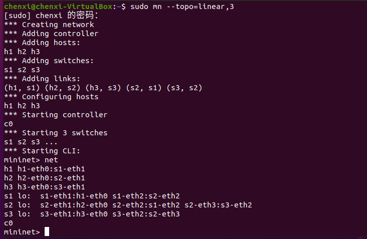 2.使用Mininet的命令行生成如下拓扑: