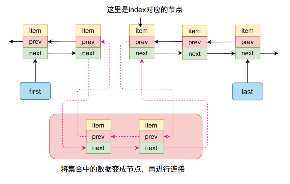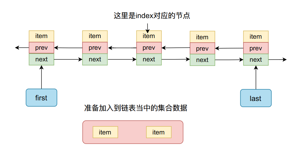 根据上面的字段分析,LinkedList内部结构主要如下: