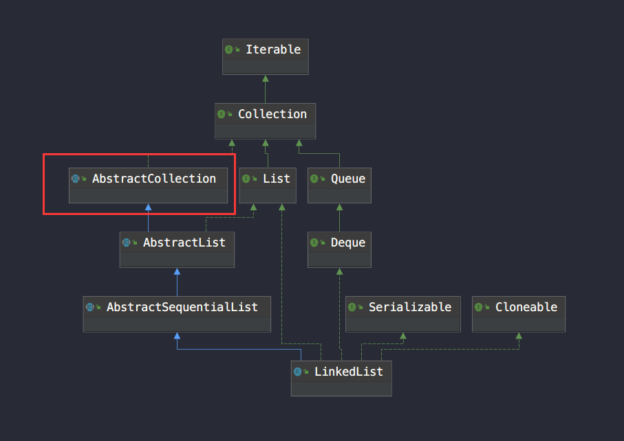 Cloneable和Serializable接口主要是为了能够进行深拷贝和序列化,这个问题我们后续再谈。 AbstractSequentialList主要是给一些接口方法提供默认实现。