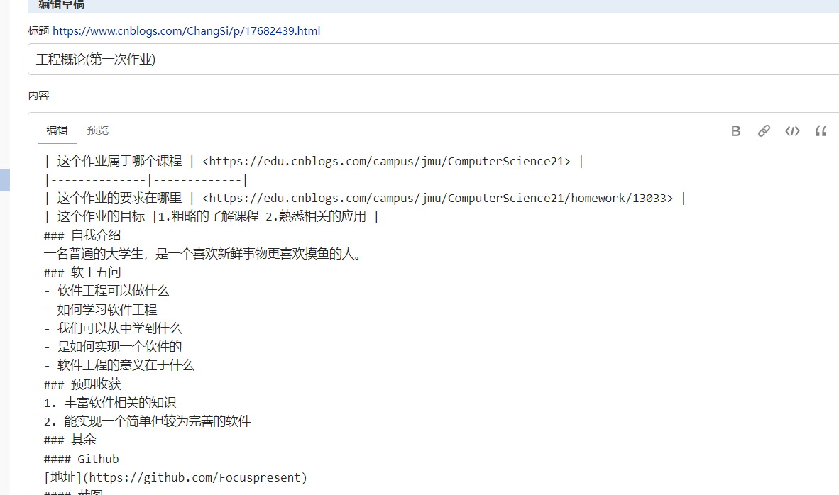 | 这个作业的目标 | 1.粗略的了解课程 2.熟悉相关的应用 |