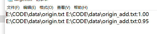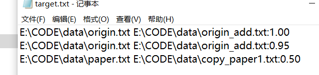 我们提供一份样例,课堂上下发,上传到班级群,使用方法是:orig.txt是原文,其他orig_add.txt等均为抄袭版论文。注意:答案文件中输出的答案为浮点型,精确到小数点后两位