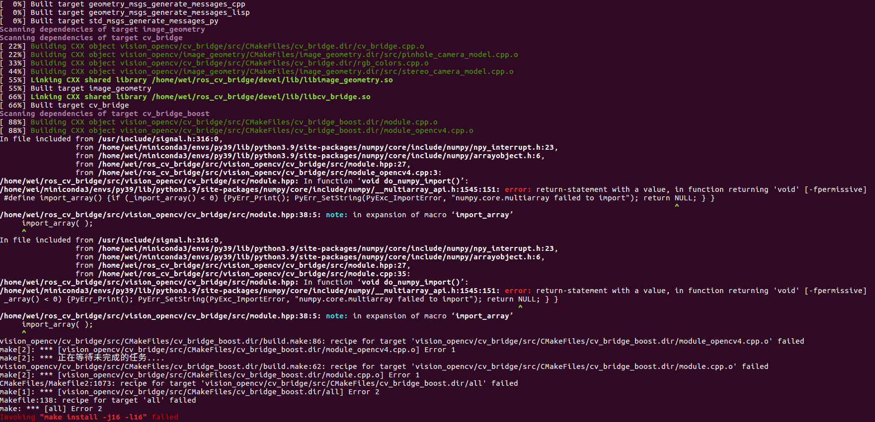 catkin_make install -DCMAKE_BUILD_TYPE=Release -DSETUPTOOLS_DEB_LAYOUT=OFF -DPYTHON_EXECUTABLE=/home/wei/miniconda3/envs/py39/bin/python3.9