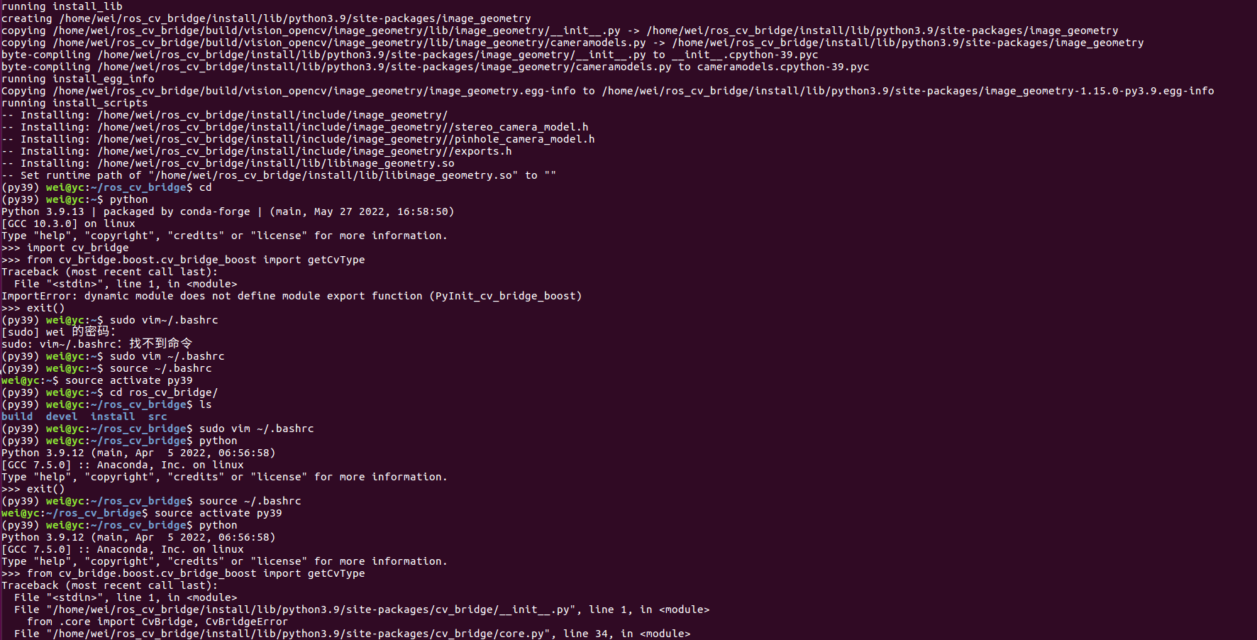 Ubuntu16.04下conda虚拟环境编译cv_bridge