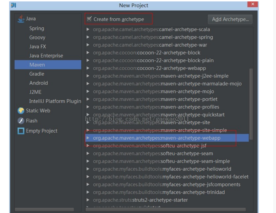 new project——maven——勾选 create from archetype 选中webapp