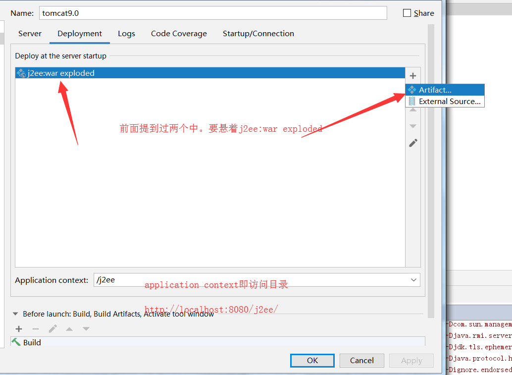 如上图所示,在Aritifaces中有两个war,一个是war 一个是war exploded,在配置服务器时需要选择war exploded