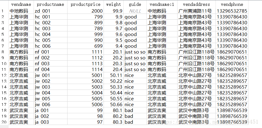 上述并没有使用where语句就可以查询出结果,会把两个表都存在的vendname去重,只显示一个