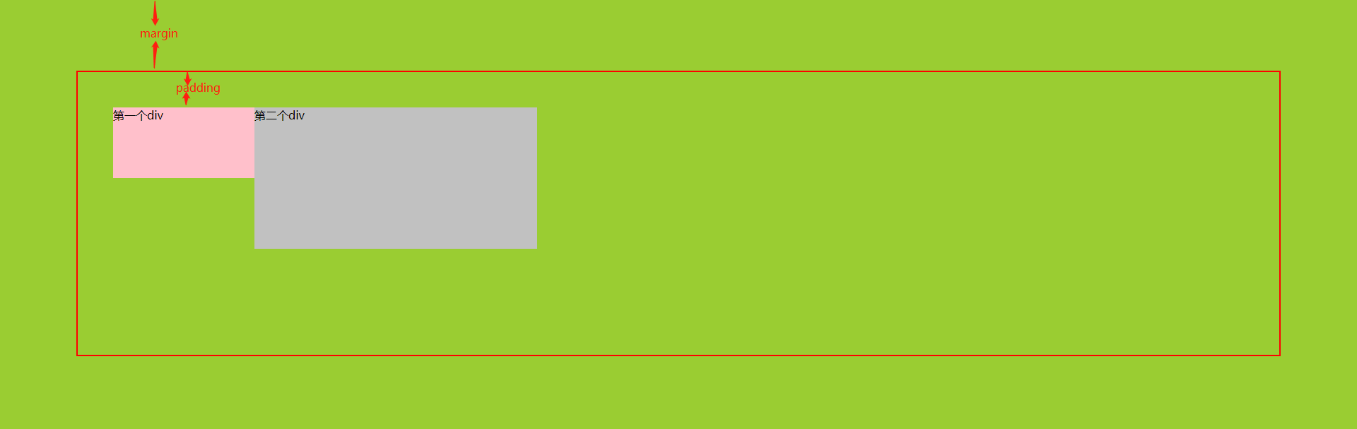 1 <!DOCTYPE html> 2 <html lang="en"> 3 <head> 4 <meta charset="UTF-8"> 5 <meta name="viewport" content="width=device-width, initial-scale=1.0"> 6 <title>Document</title> 7 <style> 8 9 .parent{ 10 height: 300px; 11 padding: 50px; 12 margin:100px; 13 border:2px solid red; 14 } 15 16 .box1{ 17 float: left; 18 height: 100px; 19 width: 200px; 20 background-color:pink; 21 } 22 .box2{ 23 float: left; 24 height: 200px; 25 width: 400px; 26 background-color: #c1c1c1; 27 } 28 29 </style> 30 </head> 31 <body> 32 <div class="parent"> 33 <div class="box1">第一个div</div> 34 <div class="box2">第二个div</div> 35 </div> 36 37 </body> 38 </html>