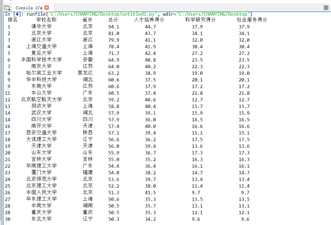 print("{1:^4}{2:{0}^10}{3:{0}^6}{4:{0}^4}{5:{0}^10}{6:{0}^10}{7:{0}^10}".format(chr(12288),"排名","学校名称","省市","总分","人才培养得分","科学研究得分","社会服务得分"))