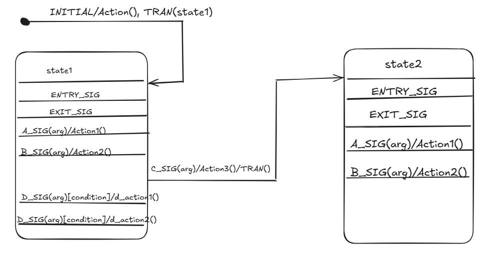 这里给出的模板有两个状态和初始化,在QPC框架里就分别对应三个函数(函数的返回值是状态)