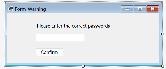 3、Confirm为确认按钮,在该按钮的点击事件中验证密码是否正确,从而确定窗体返回的结果。