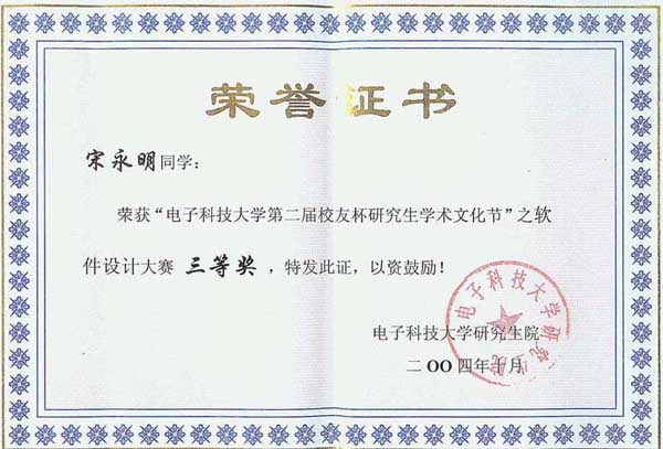 校友杯软件大赛获奖证书