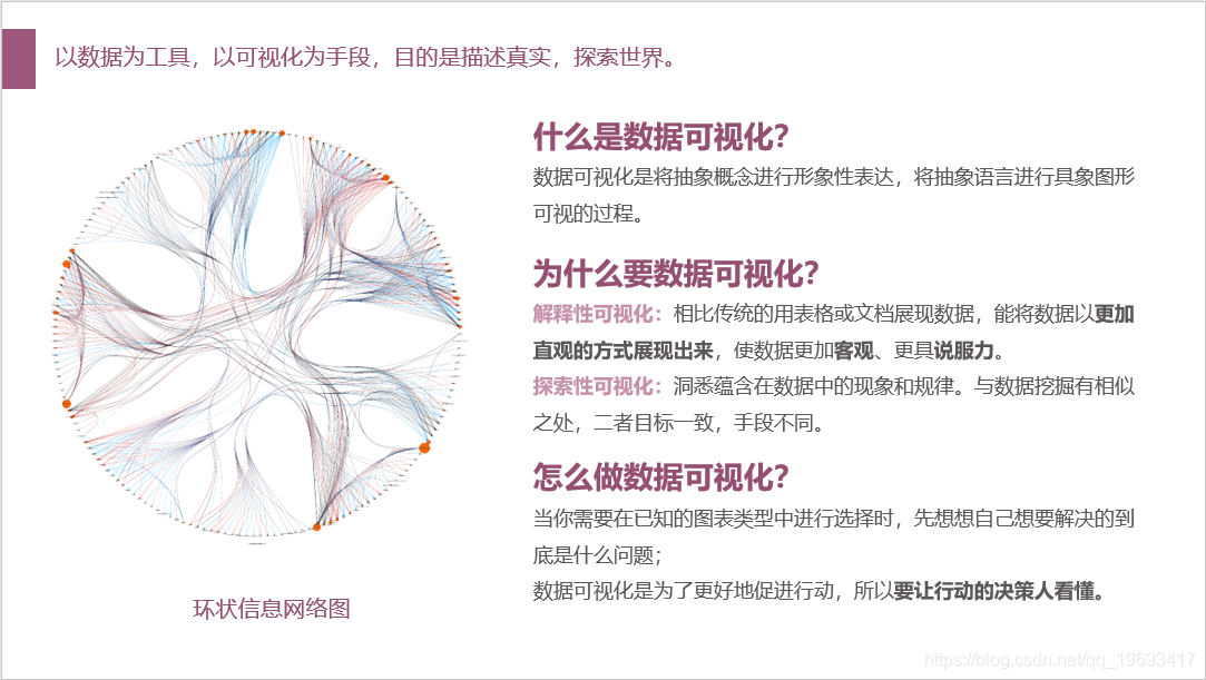 - 以数据为工具,以可视化为手段,去达到描述真实,探索世界的目的。