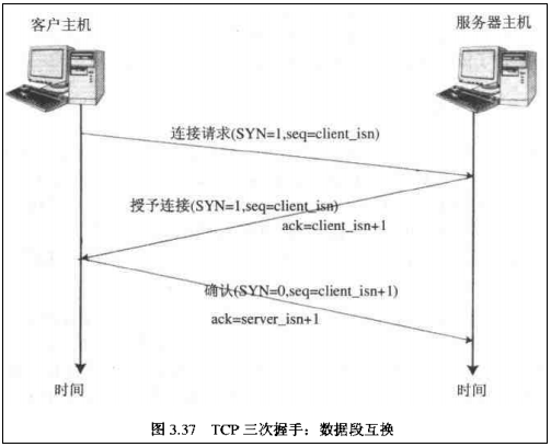 首先Client端发送连接请求报文,Server段接受连接后回复ACK报文,并为这次连接分配资源。Client端接收到ACK报文后也向Server段发生ACK报文,并分配资源,这样TCP连接就建立了。