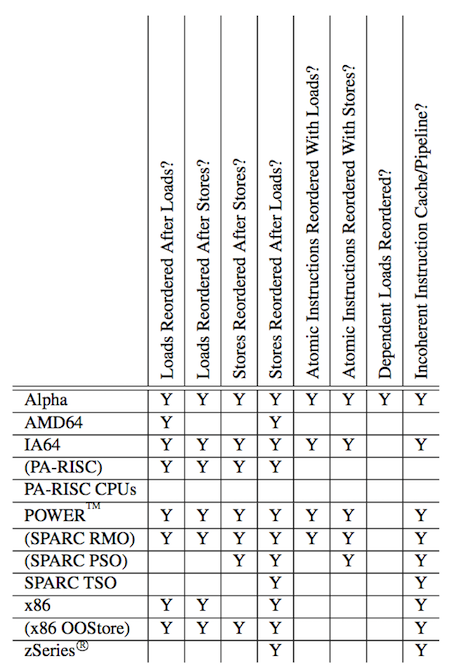 特别地,早先时候,AMD64架构也会有Load-Load乱序发生(Memory Ordering in Modern Microprocessors, PaulE.McKenney, 2006)。