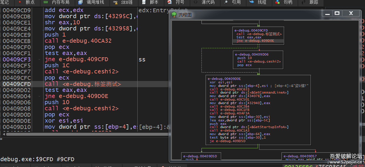E-Debug(分析易语言程序必备)https://www.52pojie.cn/forum.php?mod=viewthread&tid=1374290 原作者githubhttps://github.com/fjqisba/E-debug-plus 最开始我在OD上用这个插件,可以让分析易语言的效率倍增。最近发现有人移植到x64dbg了,在此推荐一波,打开后会自动识别易语言库函数并且注释。
