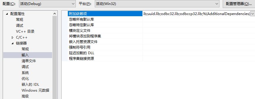 最后点击链接器下面的“输入”: