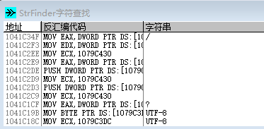 在插件中选择“StrFinder字符查找”中的“查找ASCII字符串”(注意如果下载的OllyDbg版本不对,可能没有相关插件,因此一定要找对版本),要稍微等一会儿,会出现搜索结果的窗口。