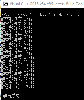 如果要解密ChatMsg.db,则在命令行窗口输入指令dewechat ChatMsg.db回车即可。