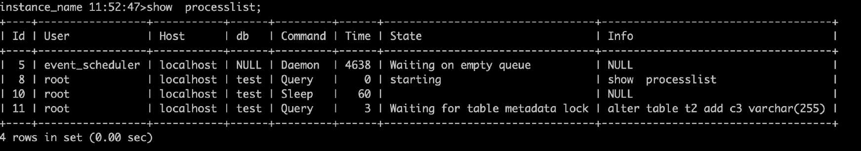 • Show [full] processlist; 不使用full则只显示info字段前100个字符