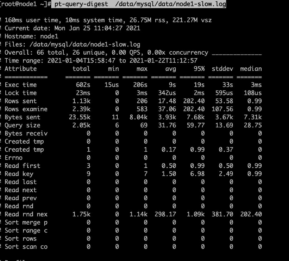 •默认type分析慢查询日志: pt-query-digest/data/mysql/data/node1-slow.log