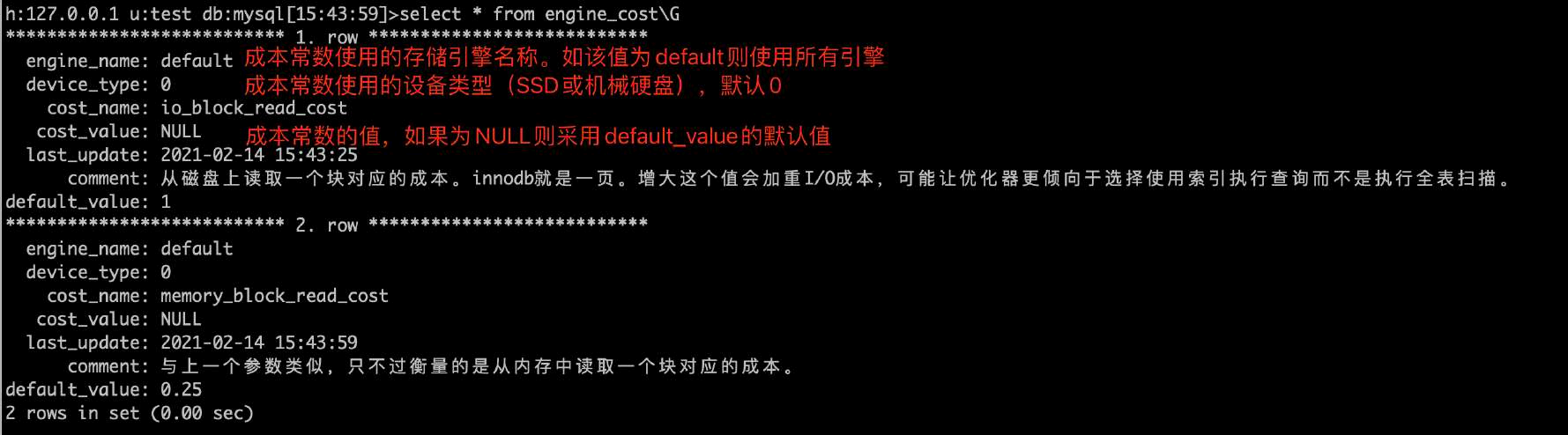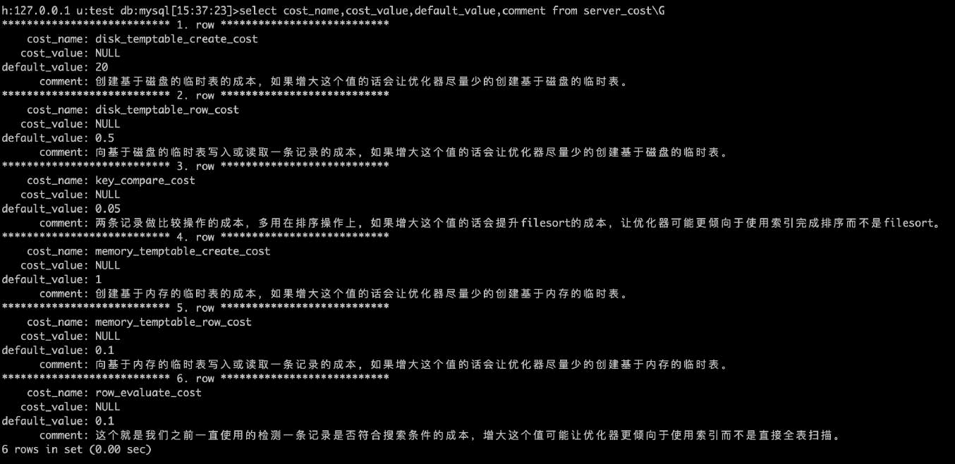 •成本常数存放在mysql.server_cost和mysql.engine_cost中,可以修改cost_value值后执行flush optimizer_costs加载
