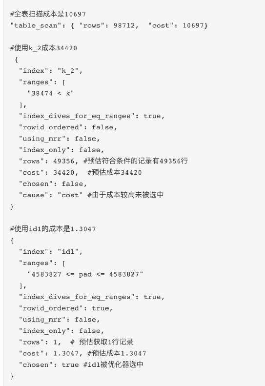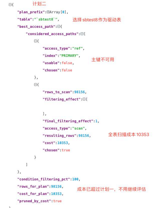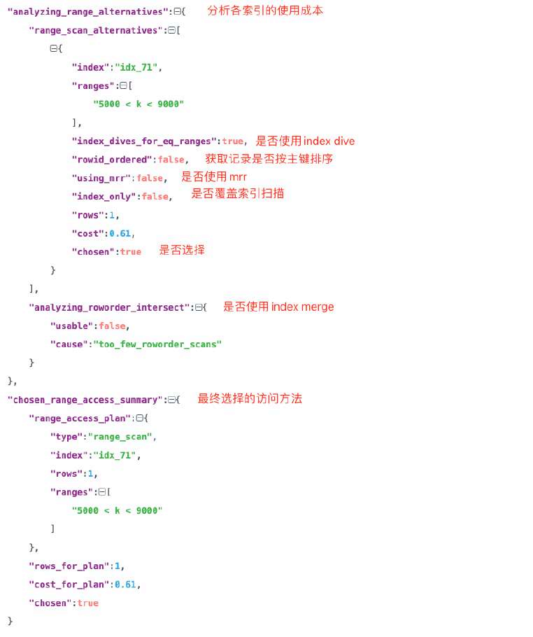 •MySQL提供optimizer trace工具剖析SQL执行过程中优化器选择执行计划的过程,如果执行计划和预期不一致,可以尝试用optimizer trace分析;