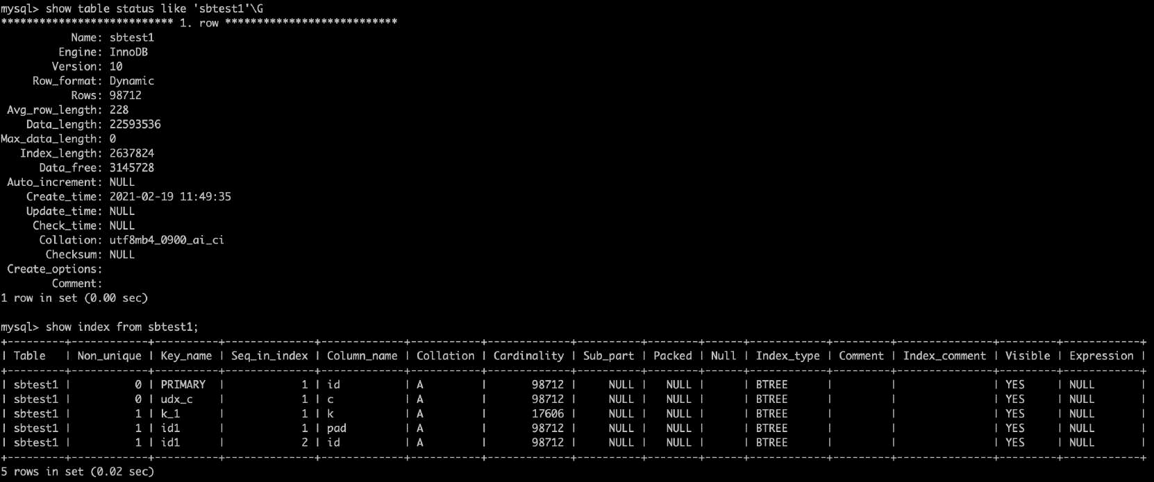• 持久化存储的统计信息是存放在mysql库的innodb_index_stats和innodb_table_stats表中的。
