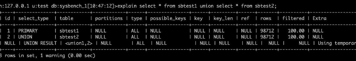 •Union result:使用临时表对union结果去重