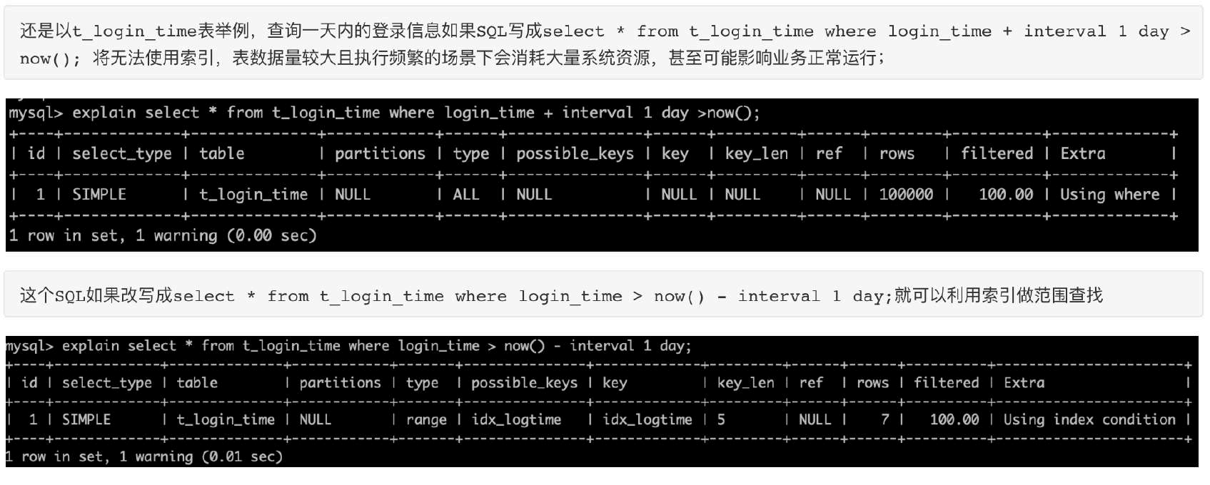 •条件字段有索引时注意强制类型转换
