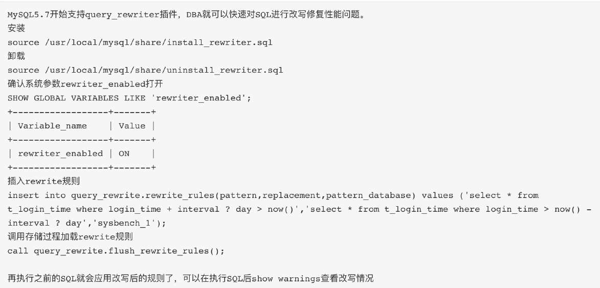 •如果业务SQL原因导致慢查询消耗大量系统资源时,可以先使用query_rewrite 插件改写SQL恢复业务