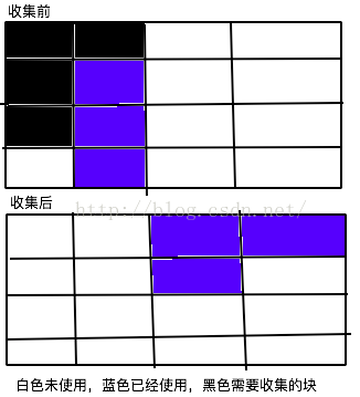 可能画出来图的时候大家都发现了,这个算法有一个很明显的问题,那就是大量的不连续的内存碎片,这样的内存碎片遇到大对象分配的时候很可能遇到内存不足的 情况,当然出了这个情况以外还有一种问题就效率太低(可以对比之后的算法)。