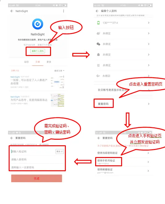每一个模块功能的需求说明都应该包含详细的原型界面图及流程图,此作简单示意图(重置密码)。