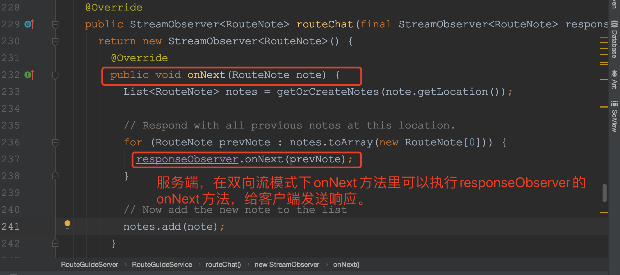 asyncStub.routeChat(new StreamObserver<RouteNote>() {